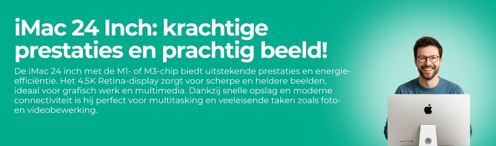 De iMac staat niet voor niets bekend als de all-in-one Apple computer. Wanneer je een refurbished iMac 24 inch koopt met Refurbished direct-deal, dan krijg je een nieuwe beste vriend erbij waarmee elk project of creatieve uitspatting een succes kan worden. Deze Apple computer is namelijk een veelzijdige speler die moeiteloos dagelijkse werkzaamheden uitvoert. Ook ervaar je geen problemen met het uitvoeren van zware apps dankzij de M1 Apple processor. Dus ben je een thuiswerker, een part-time fotobewerker of een bezige bij op kantoor? De refurbished iMac 24 inch staat altijd voor je klaar.Een iMac 24 inch tweedehands kopen met Refurbished direct-deal